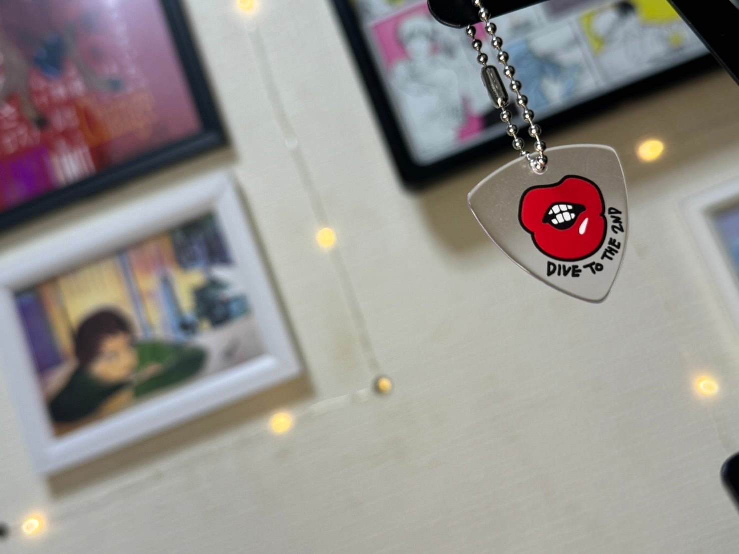 ダイセカのモチーフデザインでもある唇イラストを載せたピックキーホルダー!